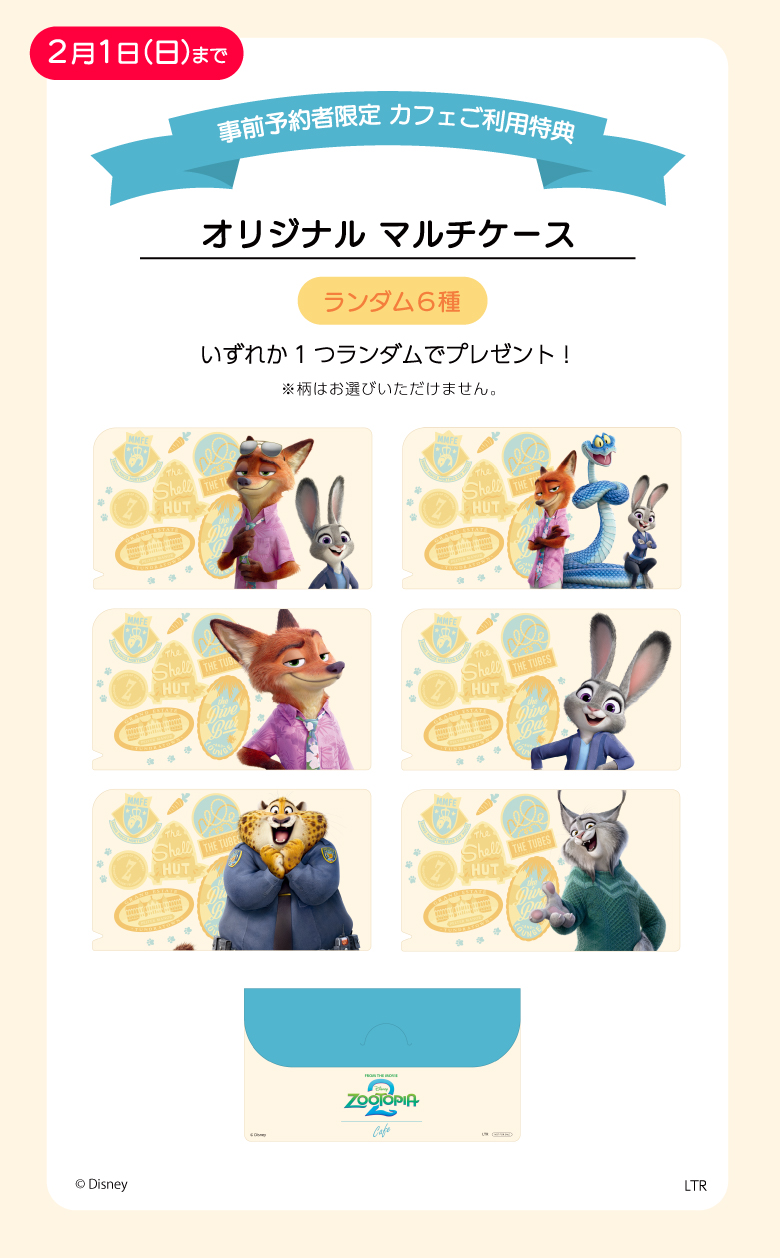 事前予約にてカフェをご利用いただいた方全員に、「オリジナルマルチケース(全6種)」をランダムで1枚プレゼント!