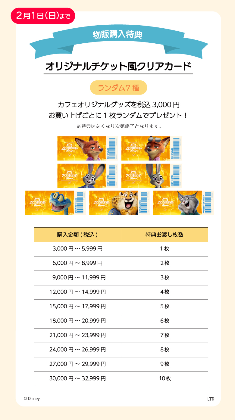 物販を税込3,000円お買い上げごとに「オリジナルチケット風クリアカード(全7種)」をランダムで1枚プレゼント!